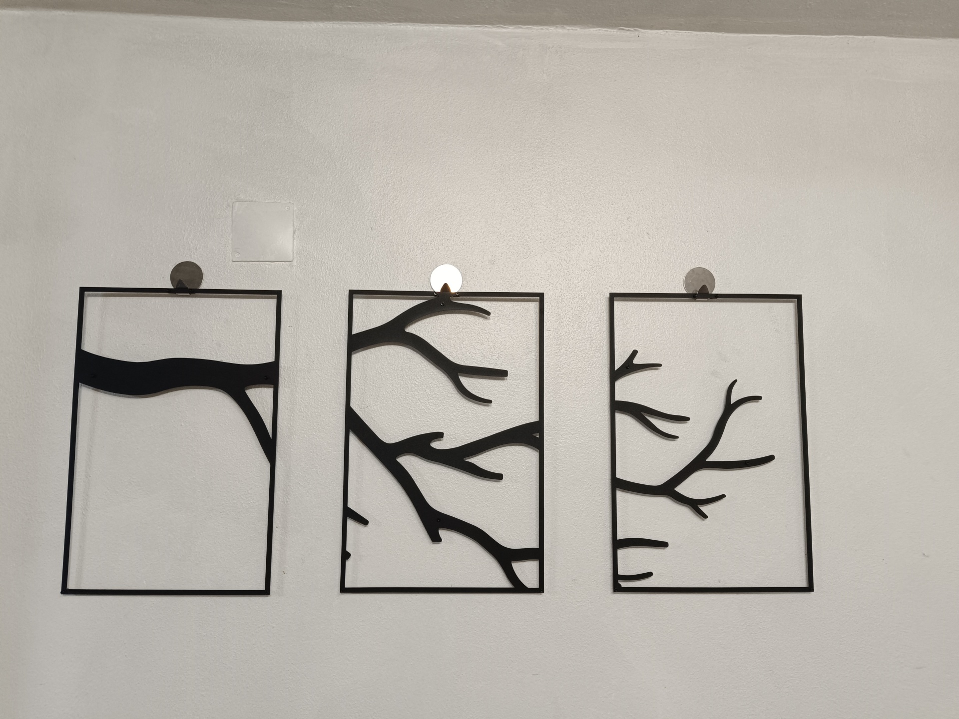 Cada parte contém 30cm X 45cm, sendo que a distância entre cada uma terá de ser de 10cm, no total a peça irá ocupar 110 cm de largura.